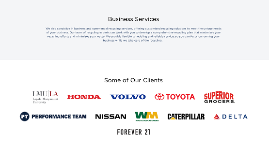 - Created dedicated landing pages for each recycling service type (cardboard, plastic, metal, etc.), allowing for better keyword targeting and improved local search rankings.